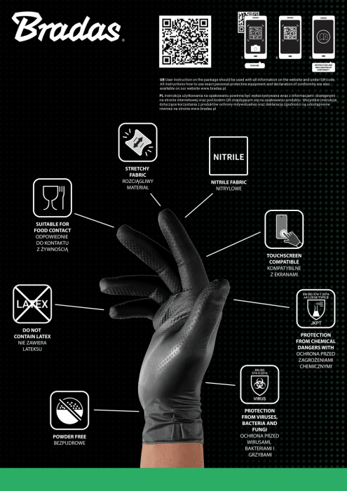 Bradas Rękawice ochronne DIAMOND nitrylowe XL rozm. 9-10 - czarne 50 szt.