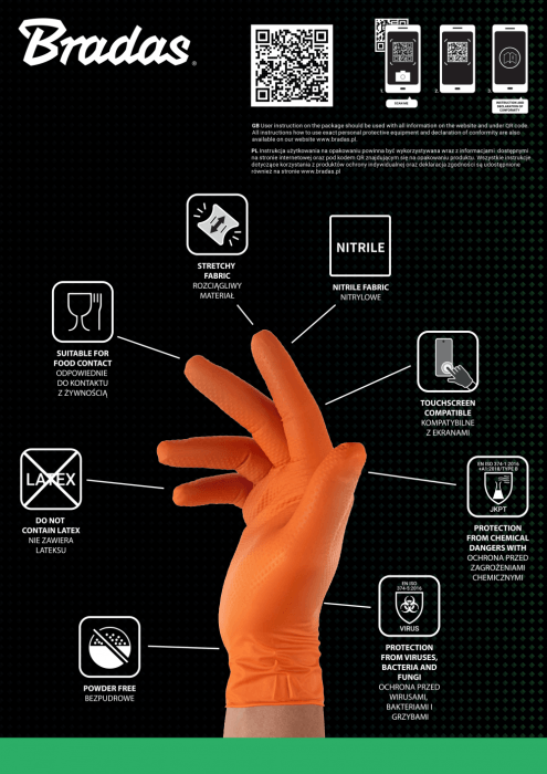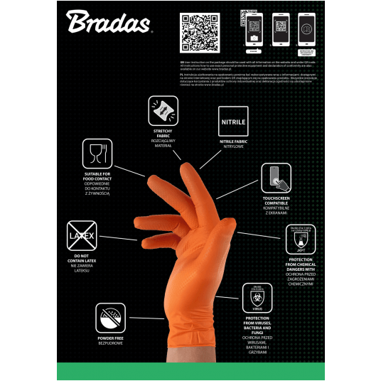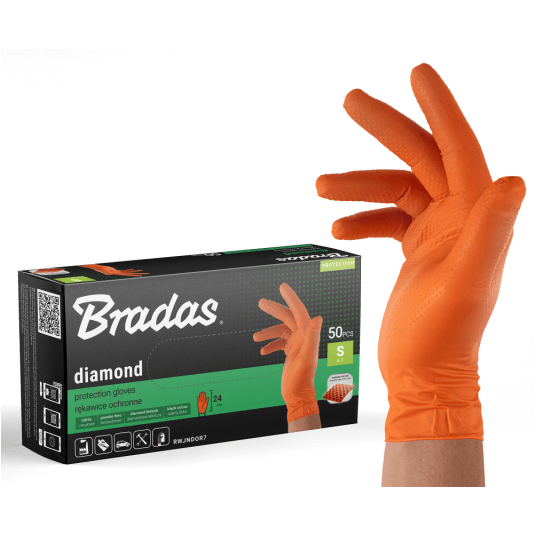 Bradas Rękawice ochronne DIAMOND nitrylowe S rozm. 6-7 - pomarańczowe 50 szt.